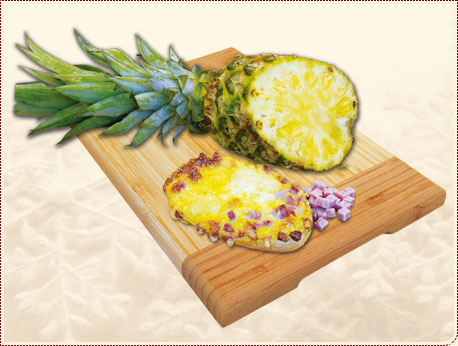 45g vorgebacken, Sauerrahm, Schinkenwürfel, Ananas, Käse